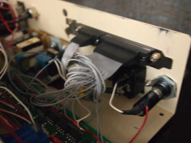 También, debido a la forma en que estoy colgando mis luces, necesitaba un cable bastante largo que cuelga del montaje de la la caja de control, por lo menos unos 15 pies. Obviamente pude hacer un cable, pero que es clase de un dolor, en vez de eso pensé, si no tener que preocuparse por el calibre, sólo podía utilizar un cable de DB25 y eliminar algunos cables muy tedioso. Para mantener el cableado simple, puse todas las conexiones de neutro lado en la fila inferior del conector DB25 y al lado de la línea en la parte superior.