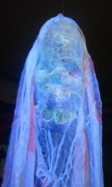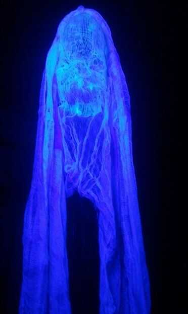 * Atar un lazo pequeño de plástico negro hasta el final, entonces la caída de una línea de monofliament negro. Atar algunos tapones (nudos es decir grandes o pequeños palitos negros) en la línea y el espíritu se moverá alrededor de la brisa hacia adelante y hacia atrás en la línea.