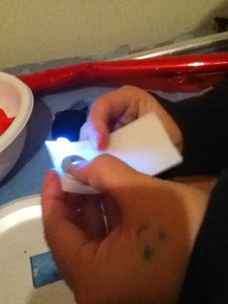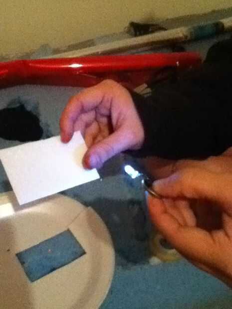 Toma su configuración de batería y LED y cinta en algún poliestireno. Esto es por seguridad para que no te choque. Envolver en espuma de poliestireno y cinta de cierre. También puede utilizar una linterna pequeña y el botón de la cinta hacia abajo.