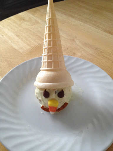 Sacar un helado en que sirve de placa y lugar cono de helado como sombrero