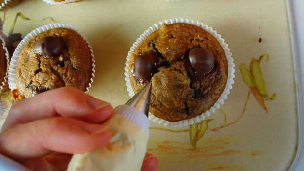 Vierta el resto del baño de chocolate en la Manga pastelera / ziplock del bolso con el N ° 1 punta o agujero muy pequeño. Pruébelo para asegurarse de que todo fluye muy bien, entonces ir y dan una mariposa sus alas... no espera, dan una araña sus piernas. Es agradable.