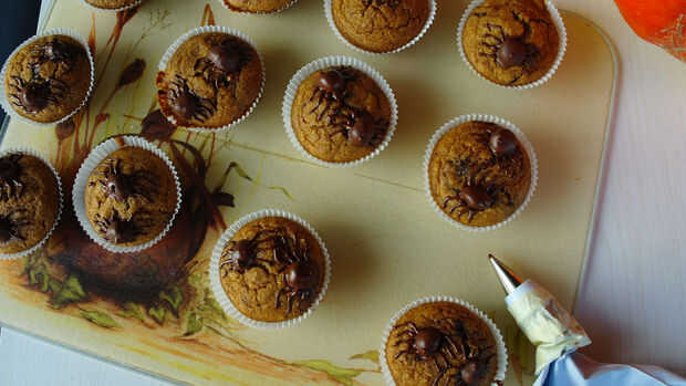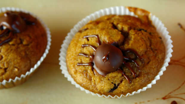 Miedo (ok, lindo) cupcakes araña calabaza (6 / 7 paso)