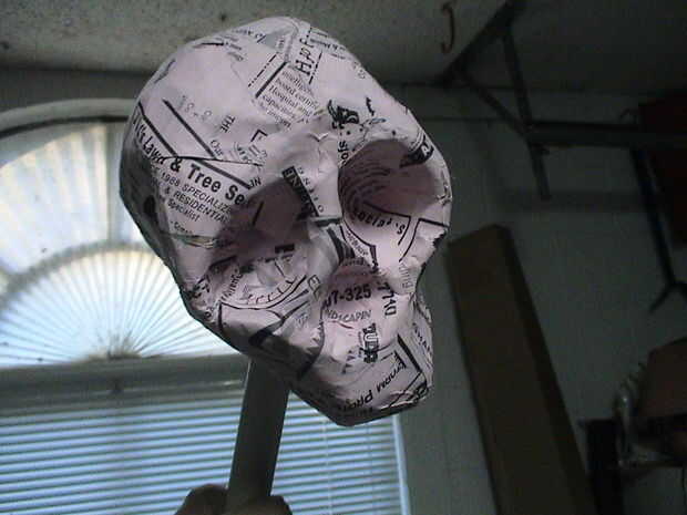 Cuando construí mi primera bruja para Halloween, hice varios cráneos de papel maché para utilizar en el futuro proyectos. Este fue uno de los proyectos de futuro. Siga los primeros pasos en mi Instructable bruja para hacer el cráneo, o ser creativo y utilizar algo más para la base de la cabeza de Santa Claus.