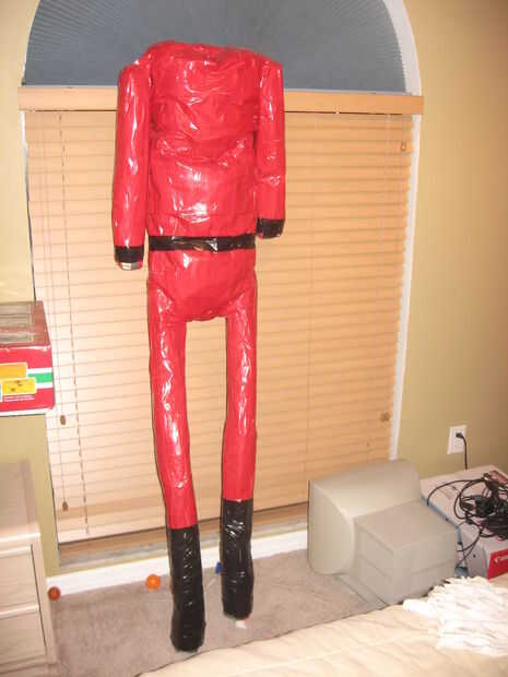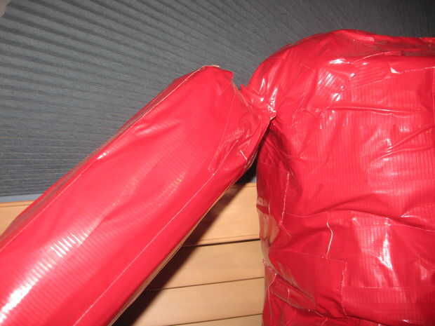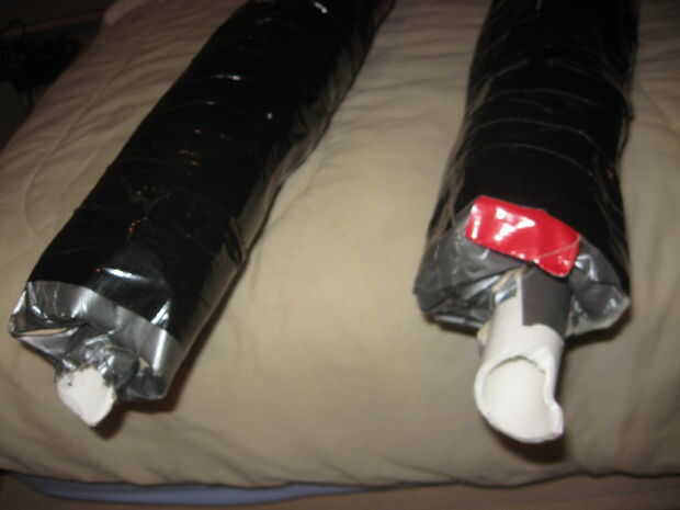 Entonces había rodado y había grabado las hojas en cilindros. El diámetro de cada cilindro depende del tamaño de la parte del cuerpo que me estaba haciendo. Torso de Papá era obviamente el cilindro más grande, mientras que los brazos y piernas eran mucho más. He pegado un extremo de cada uno de los cilindros y luego los rellenas con periódicos arrugados. Las piernas apoyar más peso, por lo que he insertado huesos de tubería de PVC va a través de las piernas. Todo fue luego con cinta de cierre y luego grabado juntos.