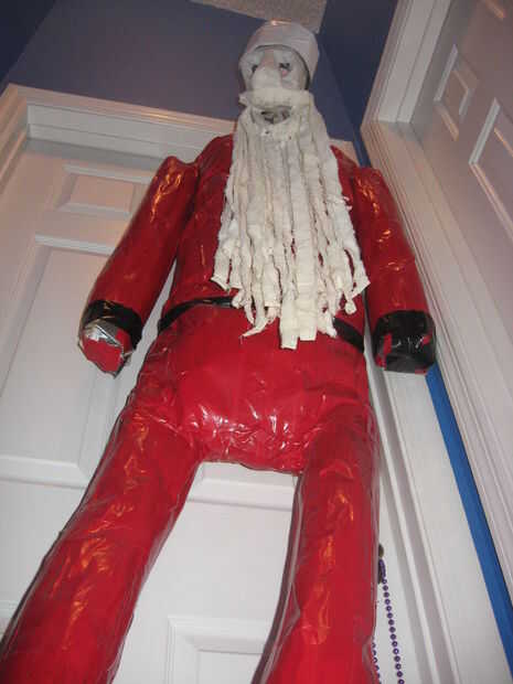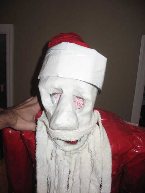 Para terminar correctamente la Santa, yo le daría ojos, manos y pies, pero que no va a pasar esta Navidad. Este miedosa Santa ha sido en este estado por algunos años ahora, y siempre quiero rehacerlo y le hacen una en algo que no asusta el barrio de los niños, pero nunca sucede.