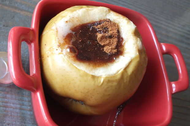 Paso 1: Primer pre calentar más a 375Paso 2: Cortar las manzanas Cortar las manzanas en cuartos y luego sacar las semillas.Paso 3: Añadir la canela y una pequeña palmadita de la mantequilla cada cuarto.Paso 4: Añadir un zumo de manzana dentro de la c