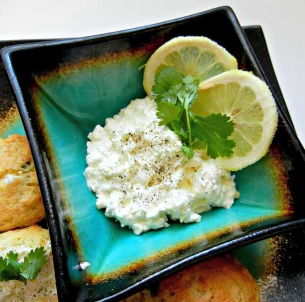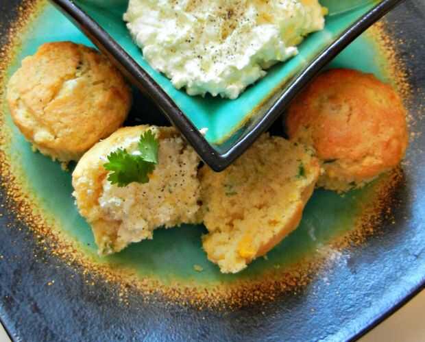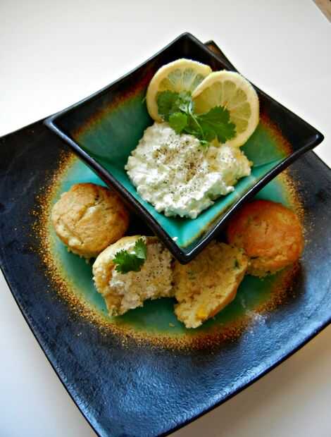 Miel Cilantro ajo Muffins de pan de maíz con limón crema de queso extendido