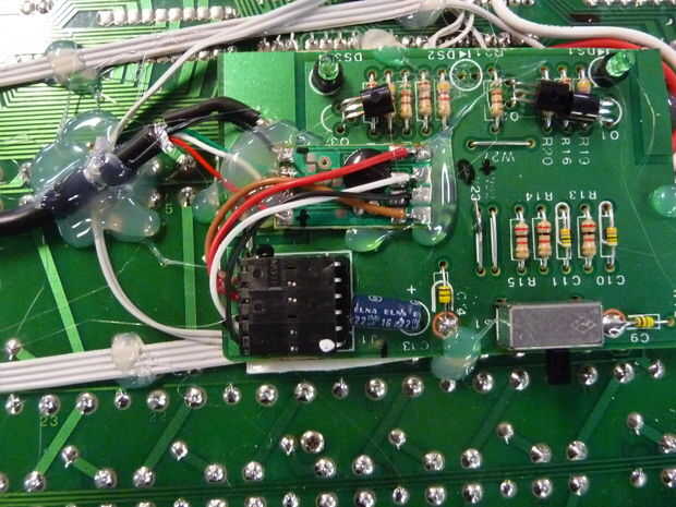 Conectar la PS2 al módulo USB en la placa de circuito impreso de E/S. Soldar el pin 5 (+ 5 V) módulo + 5 V (cable rojo), cable de conexión a módulo USB (cable negro), la clavija 1 reloj USB datos – (cable blanco) y finalmente pin 2 datos para datos USB + para la PS2 de la soldadura de puntos.