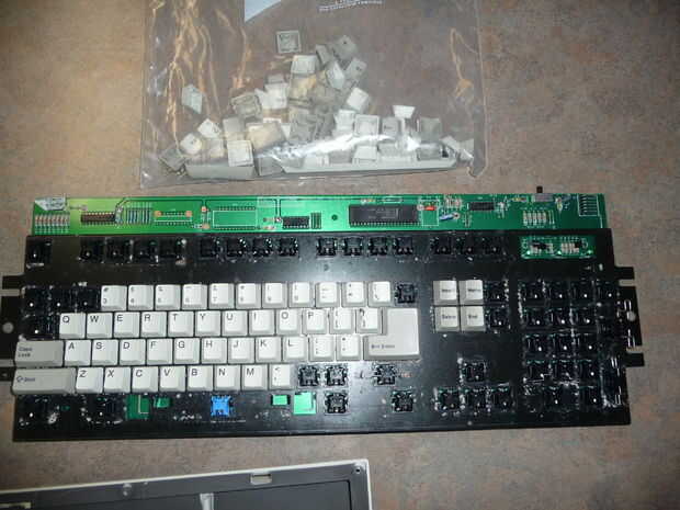 Retire todas las teclas del teclado numérico, todas las teclas de flecha, grupo de seis teclas de función e Impr Pant, Bloq Despl, pausa las llaves. También puede quitar tantas teclas como sea posible desde el teclado. Esto también es un buen momento para poner todas las piezas de plástico en el lavavajillas para desinfectarlos. No utilizaría el calor alto para secarlas, piezas pueden ser derretidas.