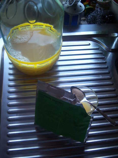 • Llenar un litro de su zumo en la botella, es importante que uses zumo sin filtrar, ya que el material de cloudening ayuda a la levadura en la fermentación