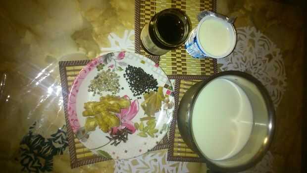 La medicina es preparada a partir de los materiales disponibles de la cocina y jardín. Tenía la albahaca Santa y betal planta en nuestro jardín y usarlo en caso de resfriado y tos.