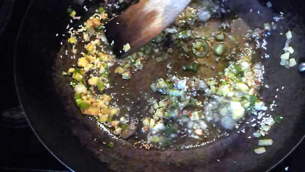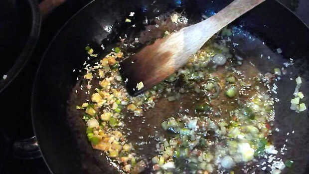 Paso 2: Sofreír la cebolleta jengibre y ajo