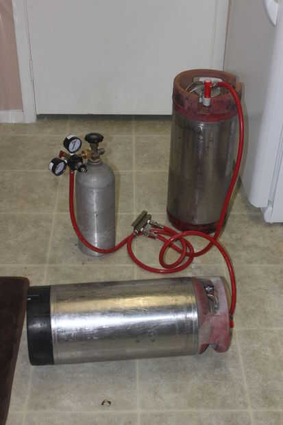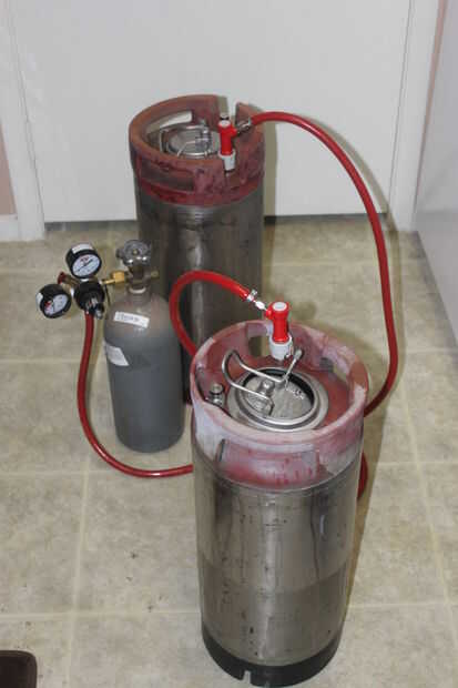 Para ebarrilado el proceso es más de una brisa. Sólo su cerveza de sifón en sus barriletes y tapa apagado. Luego purgar hacia fuera todo el oxígeno de mi barril y bomba de 30 kilos de CO2 en mi barril de bloqueo de pin. Para una más rápida reacción ruedo mi barrilete en el piso durante unos 5 minutos. Después de 24 horas me deje caer la presión hasta 12 psi y lo deje reposar otro día. Entonces está listo para servir!