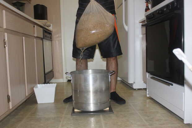 Unos 45 minutos a través de su hervor vas a querer poner otro galón de agua a hervir para que empapa sus granos. Esto le ayuda a extraer más sabor de Malta, también sustituye a todo lo que el agua que se evaporó y que el grano absorbe.