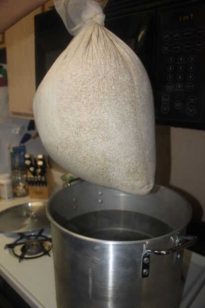 Hay varias maneras diferentes de hacer el mosto para su brew casero. Yo utilice un método del agua hierva, colar con mi grano en una bolsa y empinadas en un galón adicional más adelante en el punto de hervor.