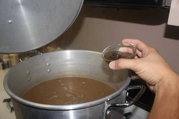 (Opcional/recomendado) vas a querer agregar algo para aclarar la cerveza. Hay unos diferentes maneras de hacer esto. Se puede usar musgo de Irlanda o whirlfloc-disponibles en línea o en tu homebrew local de la tienda. También hay varias formas diferentes para clarificar la cerveza durante la fermentación si es necesario o si simplemente olvidó agregar un clarificador para su ebullición. Utilizar musgo de Irlanda; sin embargo whirlfloc viene en tabletas y es más conveniente.
