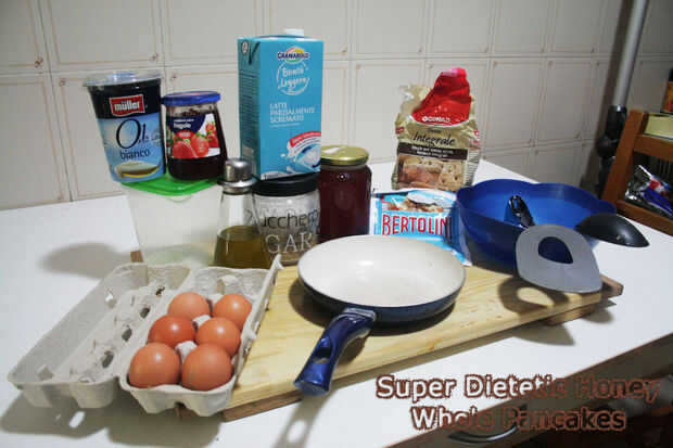 - 200ml (6.8 onzas) de leche baja en grasa. Normal de la leche es buena también, pero ya que estamos haciendo panqueques dietéticos, el bajo contenido de grasa es la mejor opción. En Italia se llama "café scremato" (leche desnatada)