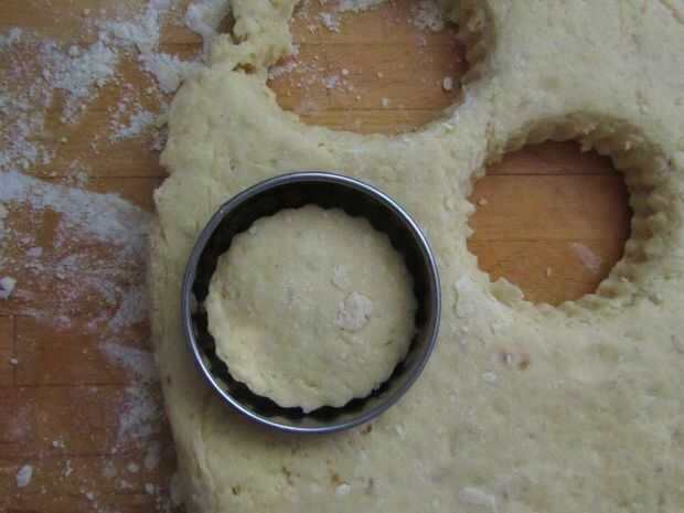 Cortar los scones con su cortador de elección, es una buena idea de sumergir la fresa en harina cada cierto tiempo para evitar que conseguir demasiado pegajosa con masa. Cortar tantos bollos como puedas, luego volver a rodar los trozos a cortar más. Una vez más, tratar suavemente la masa es la mejor manera de obtener bollos esponjosos, así que use un ligero toque con el rodillo, y trate de no volver a rodar los desechos muchas veces.