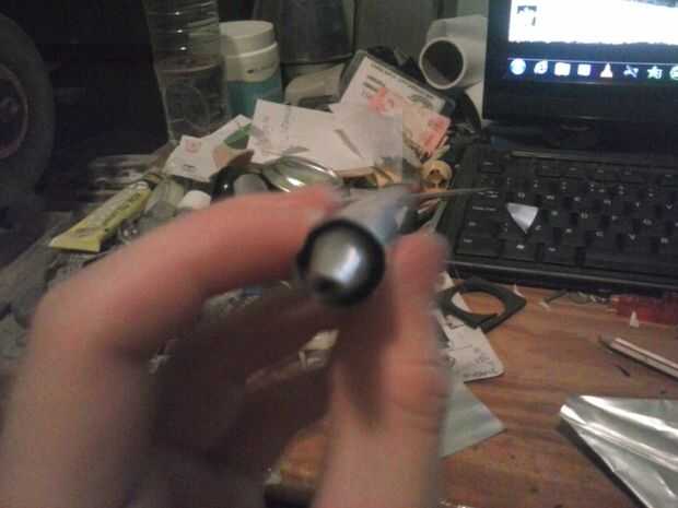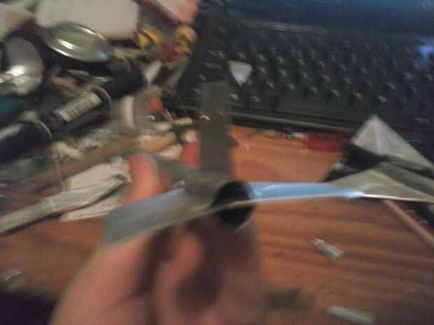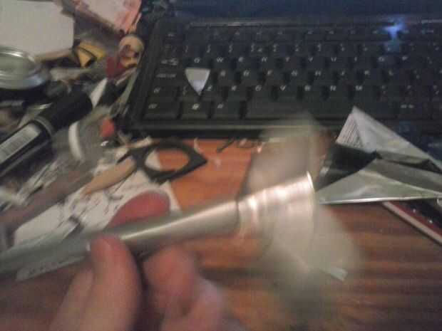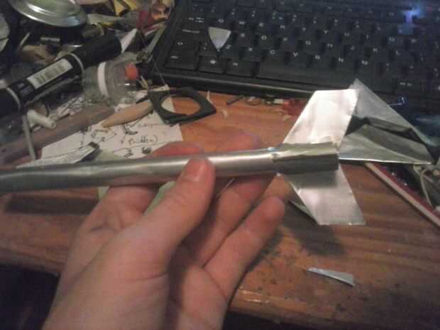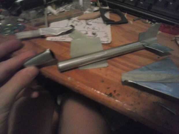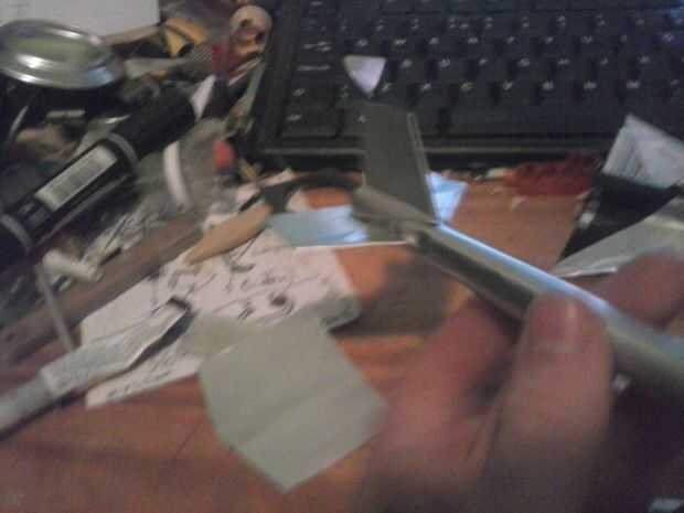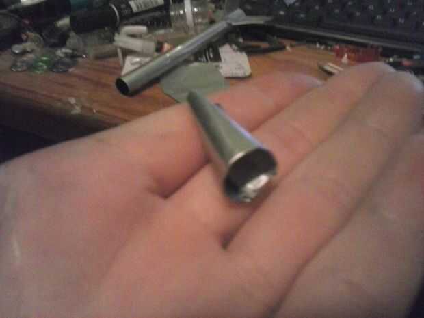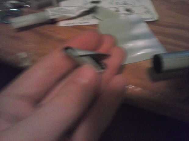 Para hacer el cono de nariz/eje Monte corté 2 anchos de dedo el extremo delantero del tubo porque era del tamaño adecuado para el cono y el fuselaje fue demasiado largo. Básicamente cortar en un "triángulo casi" y pegadas a los bordes del mismo modo que el tubo del fuselaje.