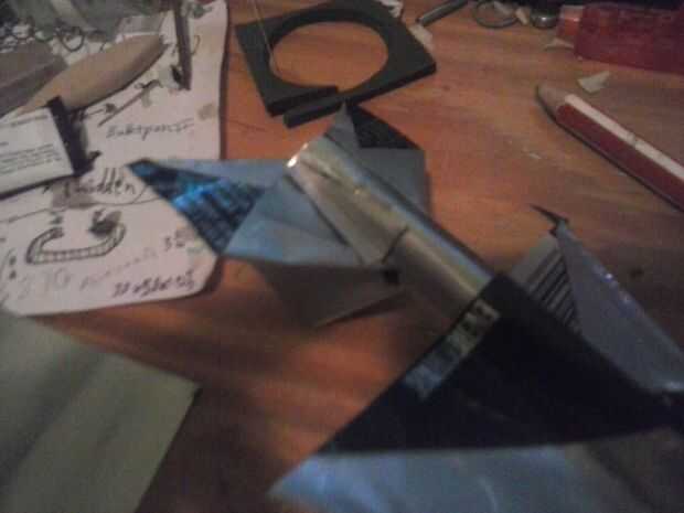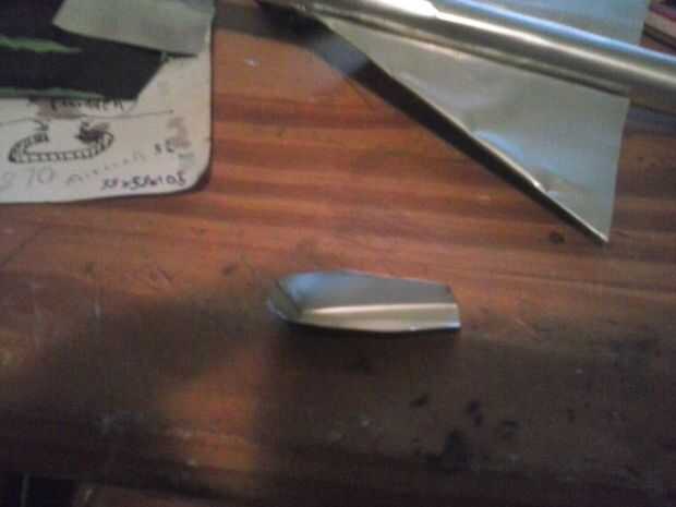 Para hacer la cabina, corte la forma que se muestra en el primer cuadro de la izquierda sobre la pieza de chapa. Decidí hacer el habitáculo "revés" en comparación con el resto del avión debido al agradable contraste entre los dos. Doblar en la forma que se muestra, segarla y pégalo en la parte superior del fuselaje donde se ve bien.