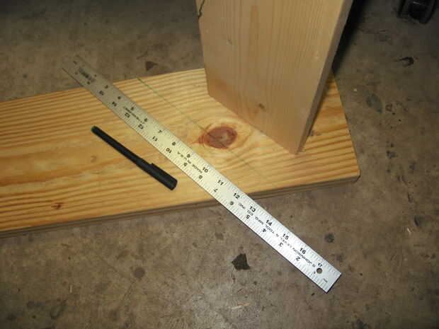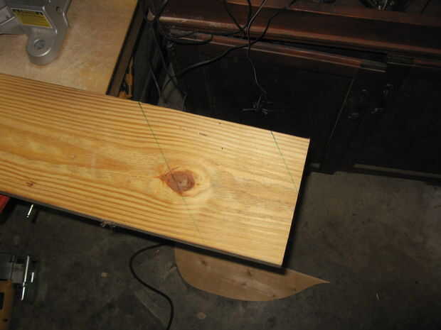 A continuación necesitaremos colocar la base. Quería una base que no era un cojo cuadrado y sería en contraste con la curva superior. Así que decidí ir con un polígono. Para hacer este soporte superior fina pieza en la base para servir como punto de referencia. Luego use una regla y un lápiz para marcar donde cortar.