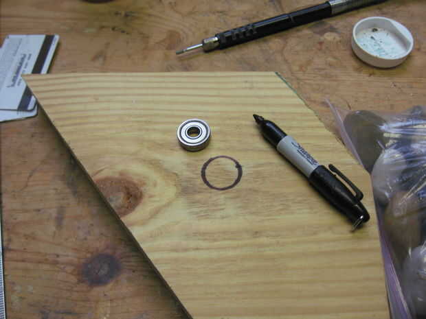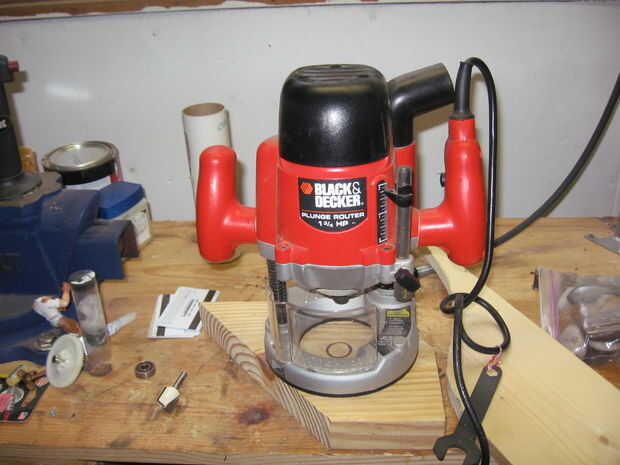 Después de cortar la base necesitamos enrutar un orificio para la cosa spinny que eventualmente permitirá la pieza a mover. Para ello coloqué la cosa spinny en el centro de la base y luego remontar alrededor de él. Resulta que el diámetro es 1" y mi mayor broca 3/4". Así que instalé mi router 3/4" bits y baja la fresadora hasta que la punta toca la superficie de la madera y había asegurada en su lugar. Luego llevó a cabo la cosa spinny hasta el medidor de profundidad y había ajustado hasta la profundidad de la cosa spinny del partido.