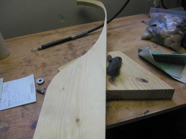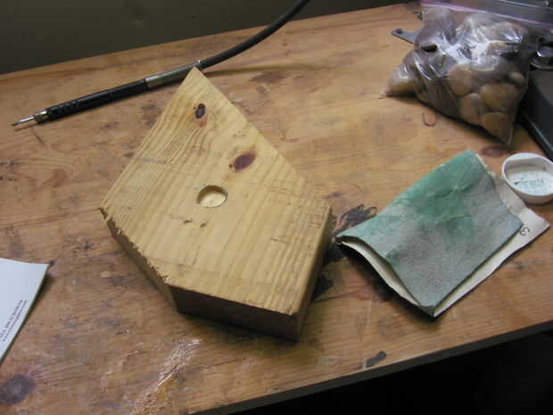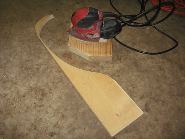 Primero utilice un papel de lija áspero para quitar los pedazos irregulares grandes. Entonces use su lijadora de alimentación con grano más fino papeles a alíselo hacia fuera tanto como sea posible. (Tenía algunas zonas que sólo no podía suavizar. No sé por qué pero creo que puede tener algo que ver con cómo la madera fue cortado y el grano.) A continuación utilice una lana de acero de grano fino para acabar.