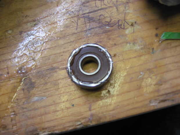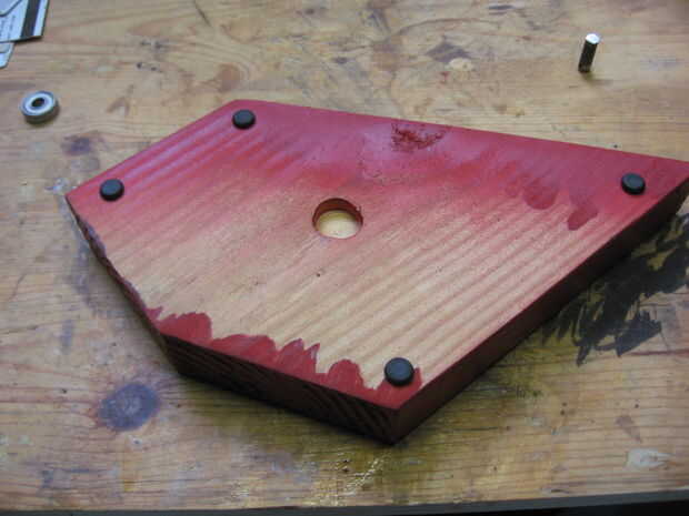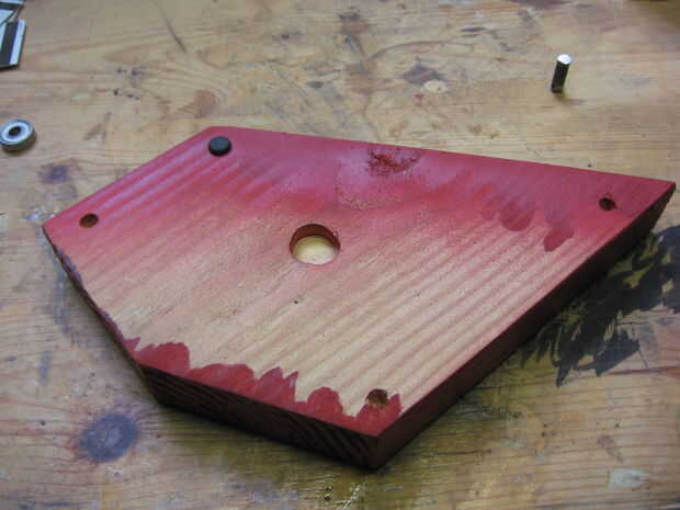 Con los pies en lugar de vuelta la base. Voltear la cosa spinny encima (no gira la parte inferior) y un E-6000 pequeño borrón de transferencia alrededor del perímetro. Asegúrese de que usted Evite poner E-6000 en las aberturas en la cosa spinny así continuará a girar. Luego coloque la cosa spinny en el agujero y esperar a que el pegamento se seque.