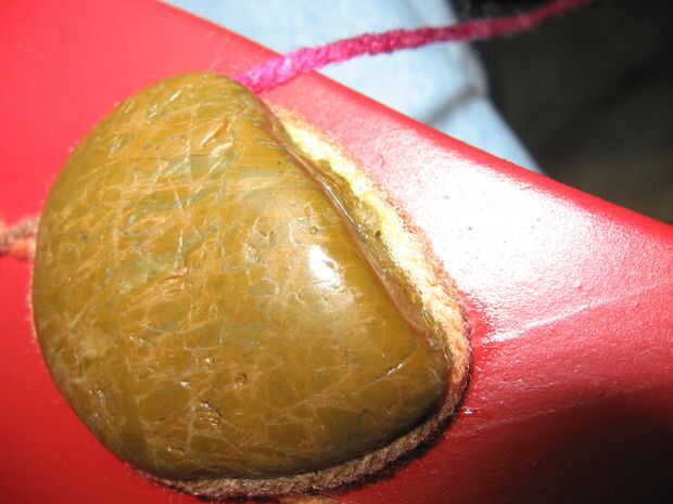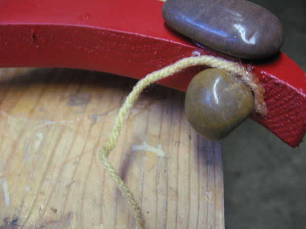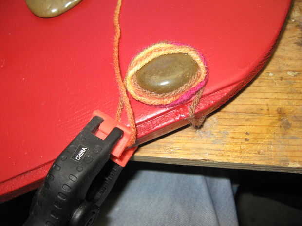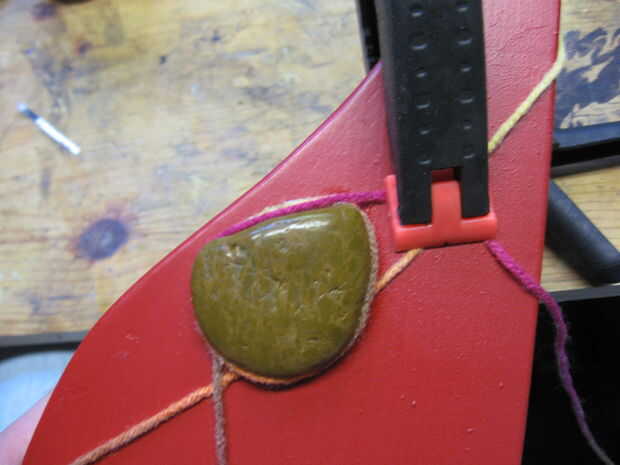 Acabar con el embalaje de la pieza superior aplicando E-6000 al hilado y envolviéndolo alrededor de una piedra mientras tira del hilo apretado. Se aplica una pinza. Cuando esté seco, cortar el hilo cerca de la piedra.