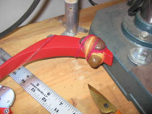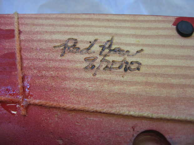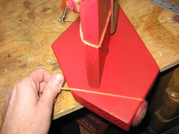 Envuelva la base de manera similar, para evitar el camino de la pieza superior. Acabó el hilo pegando a la parte inferior de la base mientras que una pinza el hilo tenso. Luego recortado del hilado. Usted notará que intentó firmar la pieza con mi estufa de leña. El grano era muy por lo que no resultan demasiado grandes.
