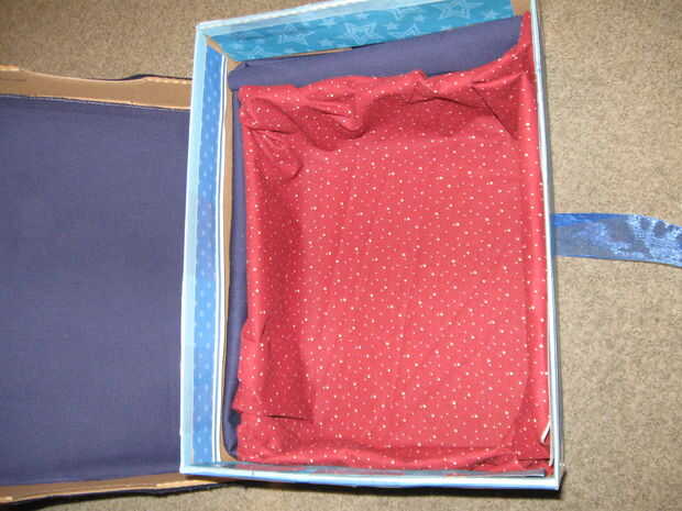 Decorar las piezas que no interfieran con las partes que se están secando. Cubrir cualquier superficie de la caja aún mostrando con el papel estampado o estampado de tela.