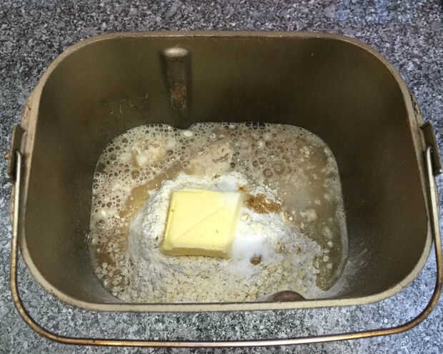 Usé una máquina de hacer pan así que acabo de poner todos los ingredientes en y seleccione el programa de masa básica.