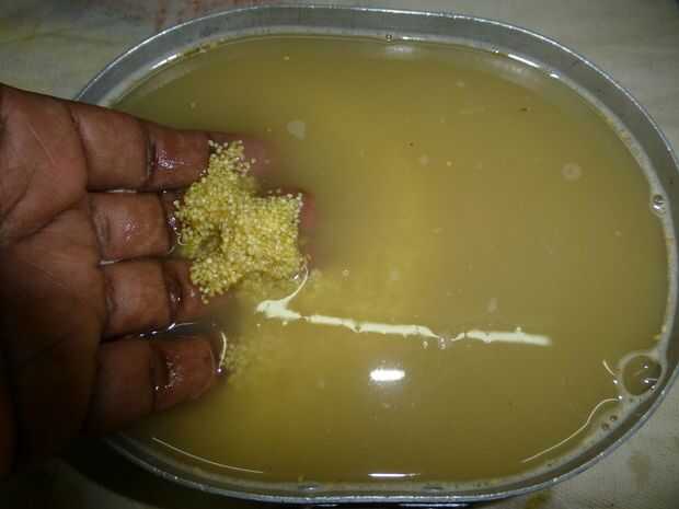 Lavar en agua limpia dos o tres veces y drenar el agua. Sol-seco el mijo limpio hasta que se convierte en completamente seco