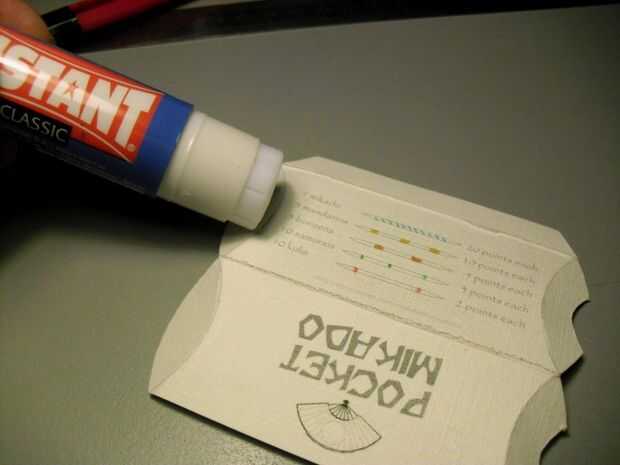 Ahora marcar las líneas, doblar una vez. Luego pegar — excepto el lado con índices de pulgar y deje que se seque con libros pesados en.