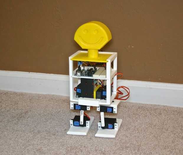 1) añadiendo baterías, electrónica y una cabeza (por encima de las piernas) afecta el centro de gravedad. Movimientos deben ser lento y respetar esta situación (esto puede ser manejado en el software, aunque él puede convertirse en una "mezcla" en lugar de un caminante Galante).