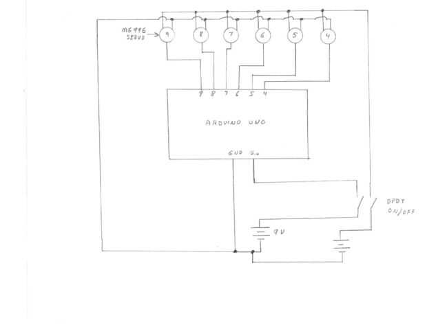 Vamos a empezar con lo que se hizo bien. Usé MG996 Servo motores, alto esfuerzo de torsión y menos de diez dólares en Amazon.com. He numerado los motores "4" al "9" y había marcado ese número en la cara visible de cada motor. Los números del motor corresponden al número de pin del Arduino y la descripción de software. Así, el motor Servo "4" va al pin "4" en el Arduino y se llama "S4" en el software.