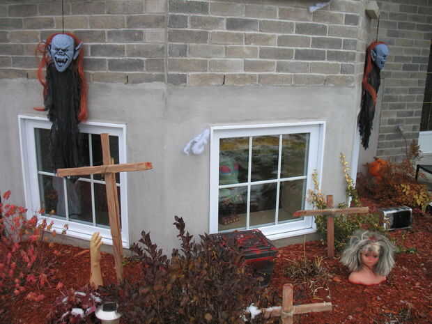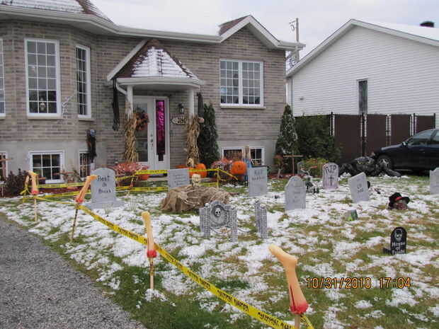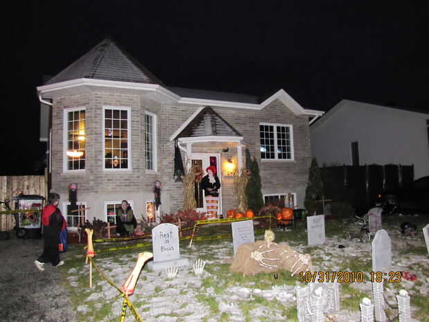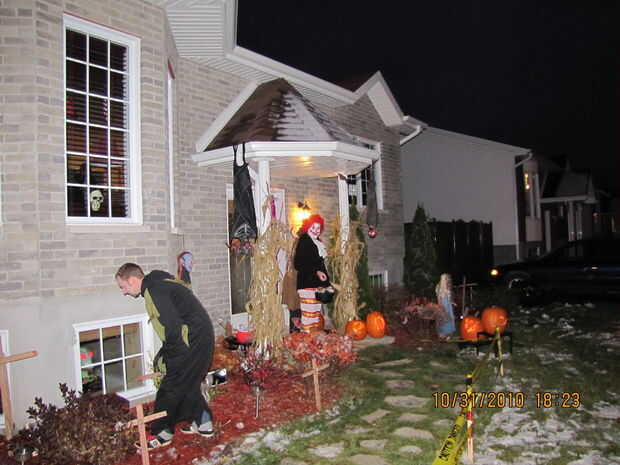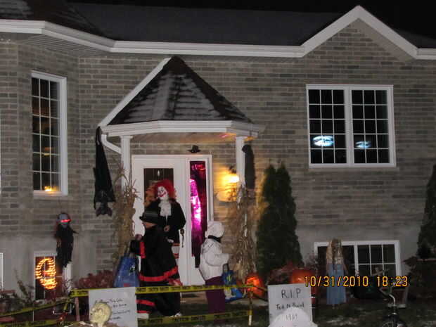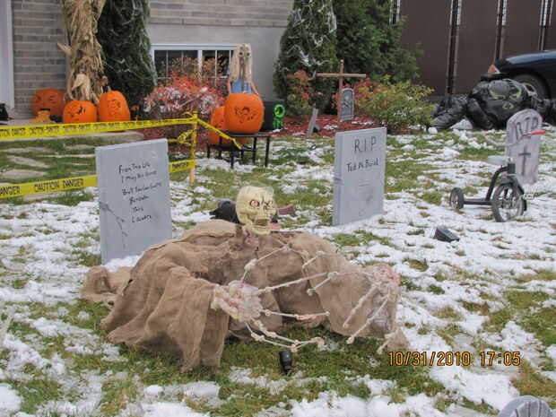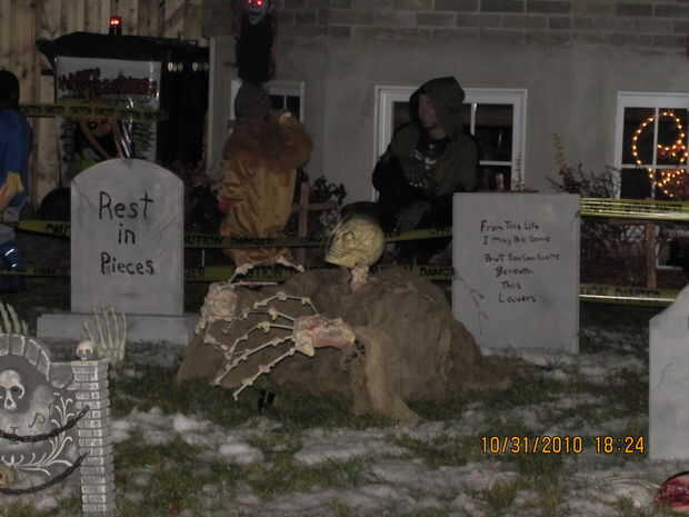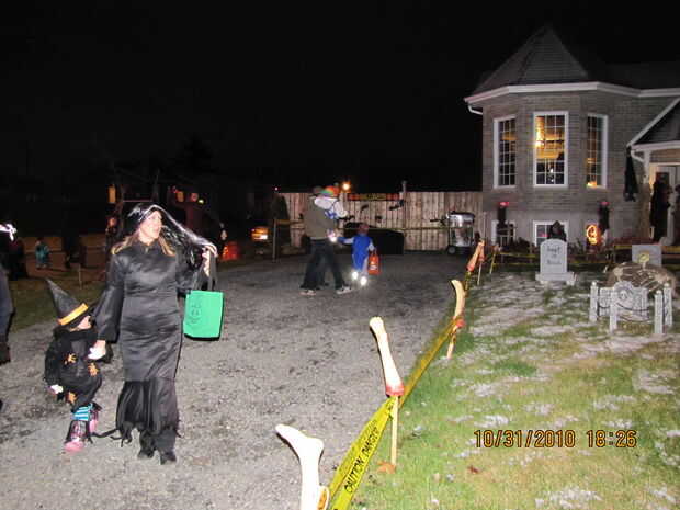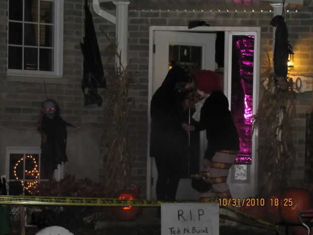 Mi refugio de yarda de Halloween de 2010 fue gran!!!! Más de 220 niños!!!. Lotes de puntales nuevos este año. Sin problemas este año a diferencia de 2009.