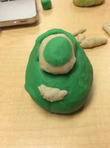 Luego tomamos otro trozo de la plastilina verde y había rodado en un gusano como forma y había colocado alrededor del ojo blanco e hizo su tapa de ojo 3d.