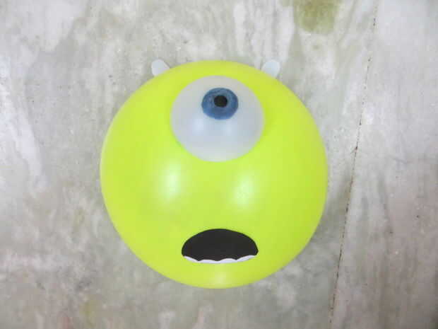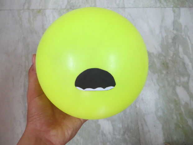 -Si lo usas como un pedazo de pared, hacer 2 agujeros en el borde a lo largo del diámetro de la bola y conectarlos con un cable de aluminio y colgar nuestro monstruo por el cable en la pared.