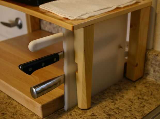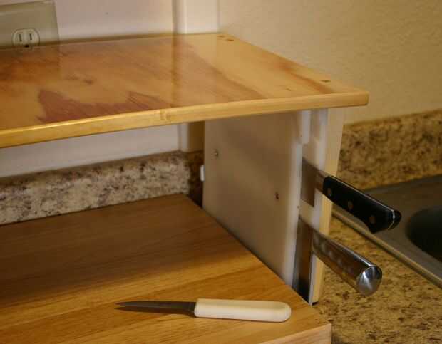 En un elemento de interfaz de usuario de "milla alta" el cursor del ratón índices (paradas) en un botón colocan en el borde de la pantalla, permitiendo a imprecisa colocación a lo largo de uno (o más) grados de libertad. Aquí construimos un knifeblock con ranuras que realizar del mismo modo.