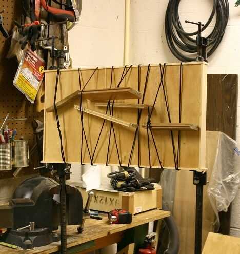 Los materiales, por cierto, son 2 x 4 estándar y láminas de madera contrachapada de grado. (más algunos de acero para el soporte) Con 3 capas de lino y 3 capas de poliuretano. Estoy contento con su aspecto (que realmente puede pulir un turd), que no sea la manera en que la plataforma deformada... Supongo que es lo que tengo para el uso de la madera más barata disponible.