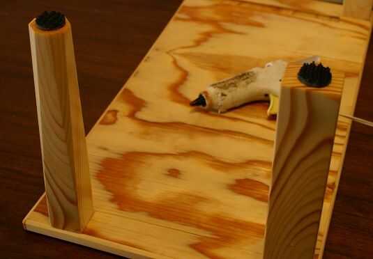 El knifeblock necesita algo para mantenerlo vertical. Esto no necesita ser tan complicado como el garaje construido aquí, aunque el almacenamiento adicional es muy agradable y el peso de la tostadora todo todavía mantiene.