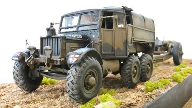 Como el modelo está representando una combinación de tractor/arma del 1 º Ejército británico, pensé que sería apropiado para retratar en un ajuste típico del norte de África de una pista de desierto. Una búsqueda en la web produce fotos de ajustes de desierto y vegetación como fotografiado en Túnez y Argelia. La base se constituyó en mi forma habitual de una placa de madera manchada coronada con floristas bloque Oasis rodeado de. 020" plástico de hoja pintado de negro plano. Una vez en lugar, seco y enmascarados, un modelo de ruedas era correr de un extremo a otro un par de veces para simular las pistas de la rueda. Una capa de pegamento blanco con agua fue pintada en y grava era rociada en. Piedras pequeñas fueron agregadas al azar aquí y allá. Después de secar durante un día o menos, fue pintado en varios tonos de tonos desierto con colores de aceite diluido (Sienna quemado, ocre amarillo, Umber crudo y blanco). Sucesivas capas eran más ligeras resaltar la rugosidad. Cuando esté seca, pequeñas matas de Woodland Scenics luz verde Extra Grueso césped fueron agregados aquí y allá según las fotos del norte de África.