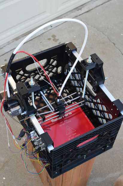 He sido un fabricante en la forma más pura desde que era un niño, y me alegro mucho de que ahora hay un nombre (comunidad y movimiento) por lo que soy. Hace pocos años tendría que referirse a mí mismo como un "chico que le gustaba desarmar cosas para ver cómo trabajaban y también construir cosas". Acaba de decir "Yo soy un fabricante" es mucho más fácil. He comprado un kit de RepRap Prusa Mendel V2 de la buena gente de granja de fabricante (gracias Colin por su apoyo) hace 8 meses y cayó inmediatamente en amor con la máquina y con la impresión 3D. Pero algunas cosas acerca de la Prusa me impresionó como oportunidades de mejora. En particular fue que para construir un Prusa, la primera cosa a hacer es crear un marco de la nada (no literalmente de curso, pero construyendo que el armazón de varillas roscadas es un proceso lento que requiere un montón de medición, corte, Unión, nivelación y plomería). Así que comenzó a pensar en formas de construir un Prusa en una estructura rígida que era fácil de construir (bueno) o ya construidos (mejor). Yo también soy un ávido fanático de reciclaje y de encontrar usos alternativos para los objetos de otras industrias. Entonces, vio o había recordado ver montones de cajas de leche sentado detrás de una tienda de conveniencia que sucios y maltratados, o cajas de leche se usa como estantería en un dormitorio de la Universidad, o como un banquillo en un garaje de mecánica, etc.. Me impresionó que las cajas de leche son por todas partes usted mira y también se construye para ser muy fuerte. Resulta que, las dimensiones interiores de una caja rectangular de la leche es lo suficientemente grande para insertar las piezas de trabajo de un Prusa Mendel y lograr la misma área de construcción en la dirección X y Y y...