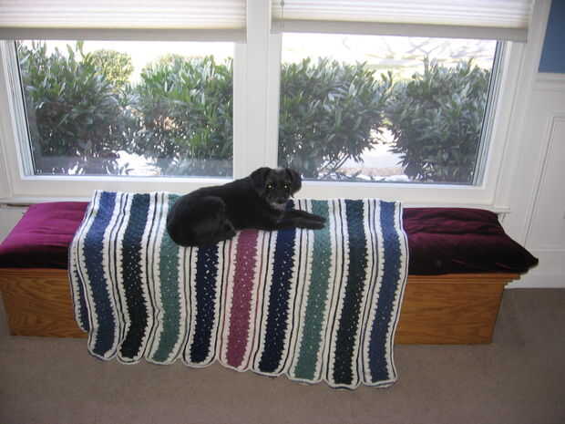 este es un proyecto que comencé hace varios años y encontré cuando estaba buscando algo nuevo para trabajar en fin de semana pasado. No tengo idea por qué ponerlo a un lado, pero me inspiré en este reto para terminarlo y poder pasar a un nuevo proyecto con una conciencia limpia (sobre todo). Usé el León marca lana facilidad y un patrón de ático de Annie ' cálido y maravilloso los afganos milla por minuto. Se llama a olvidadiza abuela y era muy fácil de hacer. Aunque me encanta hacer las tiras, les cose juntos fue mi parte menos favorita de este proyecto.
