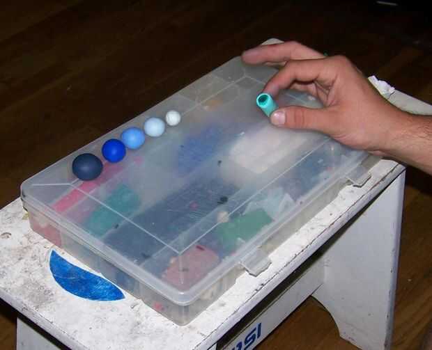 Empecé con recto negro en el centro de descolorarse hacia fuera el la más ligera sombra de verde en el exterior. Empezar por rodar el negro en un tubo. Tome la siguiente sombra más oscura y aplástelo en una hoja, algunas personas usar un rodillo de pasta para esto--y envolver alrededor del tubo. Repetir este proceso para los otros tonos. Lo que usted termina con es un tubo que tipo de corte se ve como un ojo de toros.