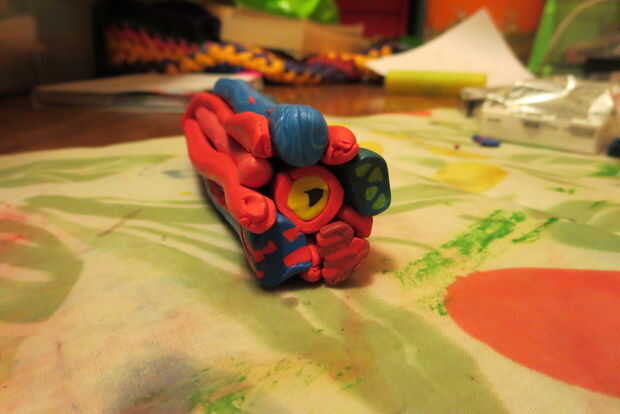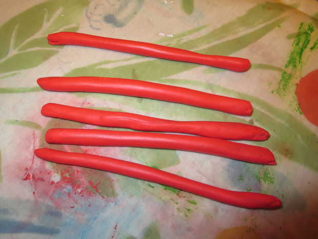 A continuación extienda el cinco cilindros, bastante para cada espacio entre el resto de los organelos. Necesitaba los aplane un poco para conseguir que se ajuste.
