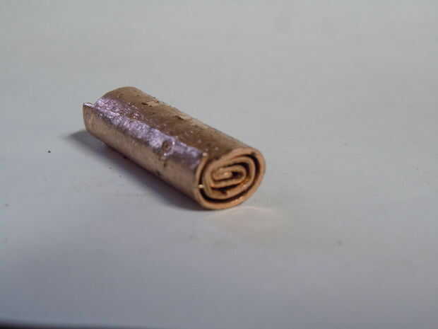 Abra el tubo y sujetar en un tornillo de banco. Agáchate un poco los labios y prensado. Repita hasta que haya un laminado en cobre sushi, burrito, registro suizo etc..