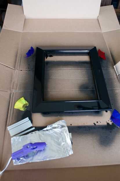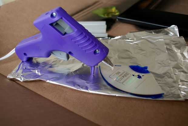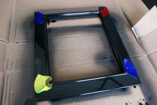 - Utilice la pistola de pegamento caliente para poner una cantidad generosa de pegamento en la parte posterior (el lado que no es de color) y pegue el lado pegado al marco.