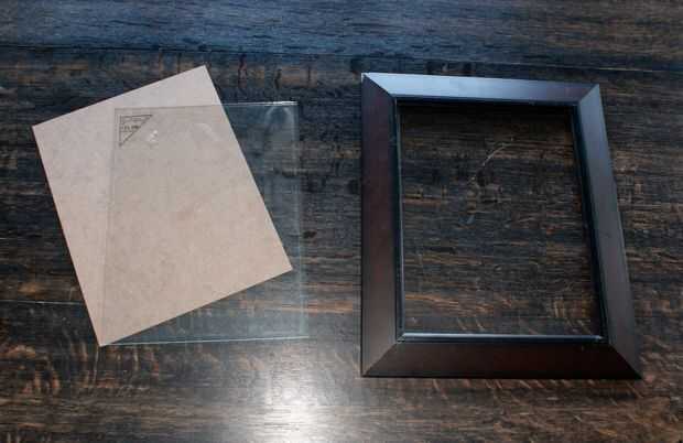 En primer lugar, retire el respaldo y el vidrio, el marco y estos apartar hasta que es hora de montar el cuadro en la tercera y última sección. Desea pintar el marco de la misma.